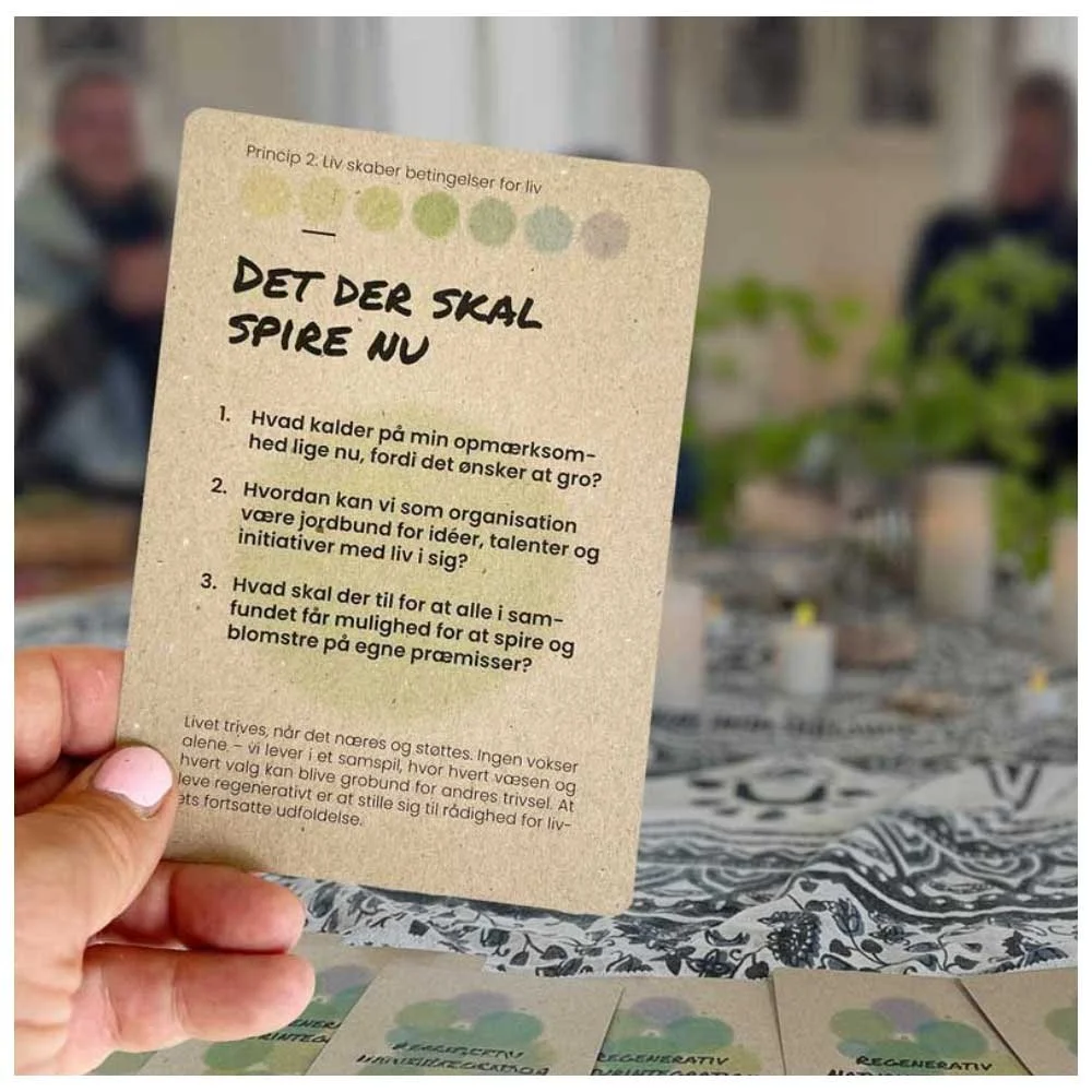 Jeg omsætter facilitering til konkrete værktøjer og oplevelser – særligt gennem udviklingen af dialogspillet Grøn Trepart i samarbejde med Peter Andreas Norn fra Jordnær Rådgivning. Spillet understøtter konstruktiv dialog om arealanvendelse og samler forskellige interesser i et fælles rum. Derudover arbejder jeg med formater som Inner Sustainability Game og målrettet workshopdesign med tydelige outputs. Fokus er på at skabe struktur, engagement og resultater, der kan bruges direkte i praksis.